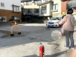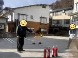 先日、河一屋では冬シーズンに向けた消防訓練(今回は消火訓練)を行いました。